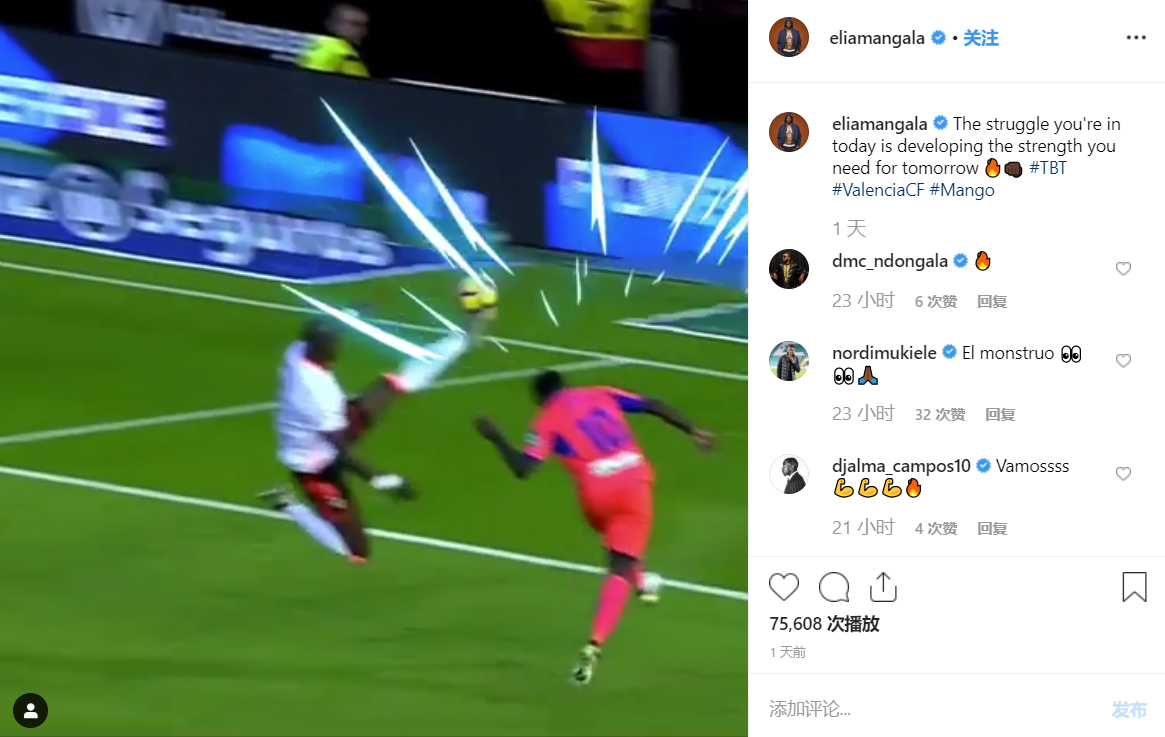 这段集锦全部是16-17赛季曼加拉效力瓦伦西亚时的各种防守,曼加拉在旁边写道:“今天你受到磨难是为明天的你积蓄力量。”
