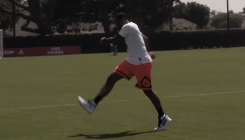 随后,二人用一颗足球进行了彼此运动项目的切磋,霍尔丁指导了安东尼的射门,而安东尼则调教了霍尔丁的投篮。