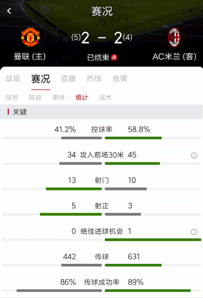 数据显示,曼联有更多的射门机会与射正,但糟糕的进球转化率一度让他们陷入劣势。