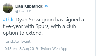 大赢家8月8日讯 据BBC最新消息,热刺已经完成了塞塞尼翁的转会,塞塞尼翁已经和热刺签下一份为期5年的合同。热刺跟队记者Dan Kilpatrick也确认了这一消息。据悉,塞塞尼翁的转会费固定金额为2500万英镑,根据球员的表现最高可以上升到3000万英镑。