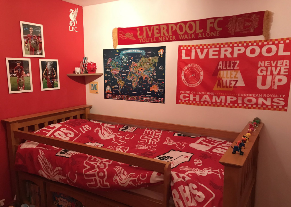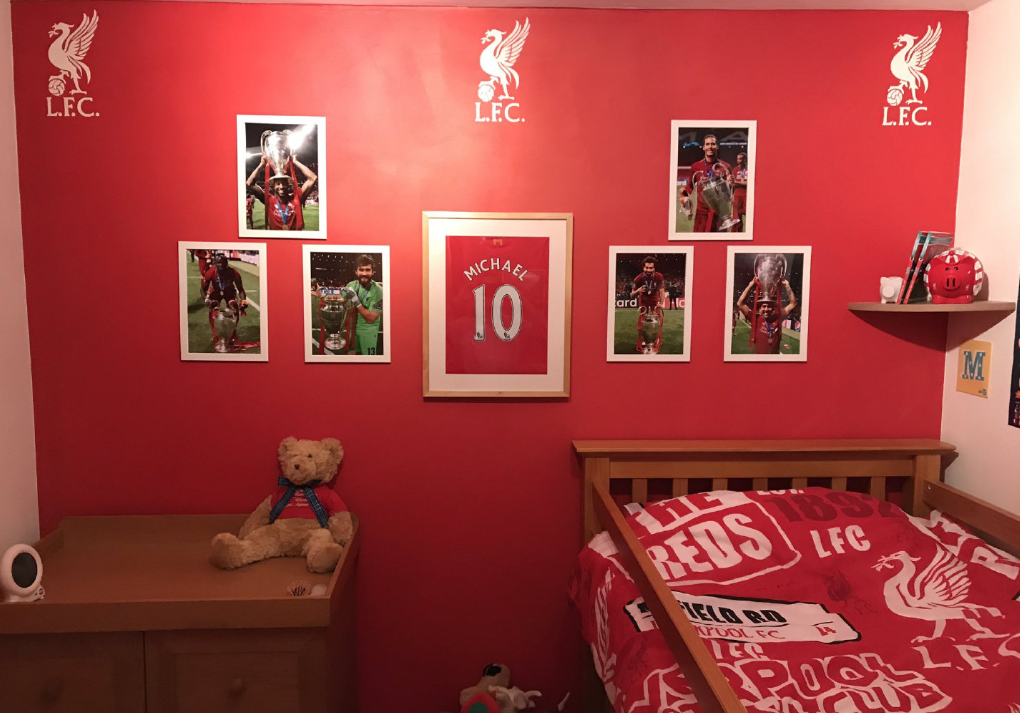 大赢家8月27日讯 此前一位Kop父亲在对阵巴塞罗那欧冠之前,向自己的儿子承诺,如果利物浦最终能夺得欧冠就为他装扮一个“利物浦”元素卧室。